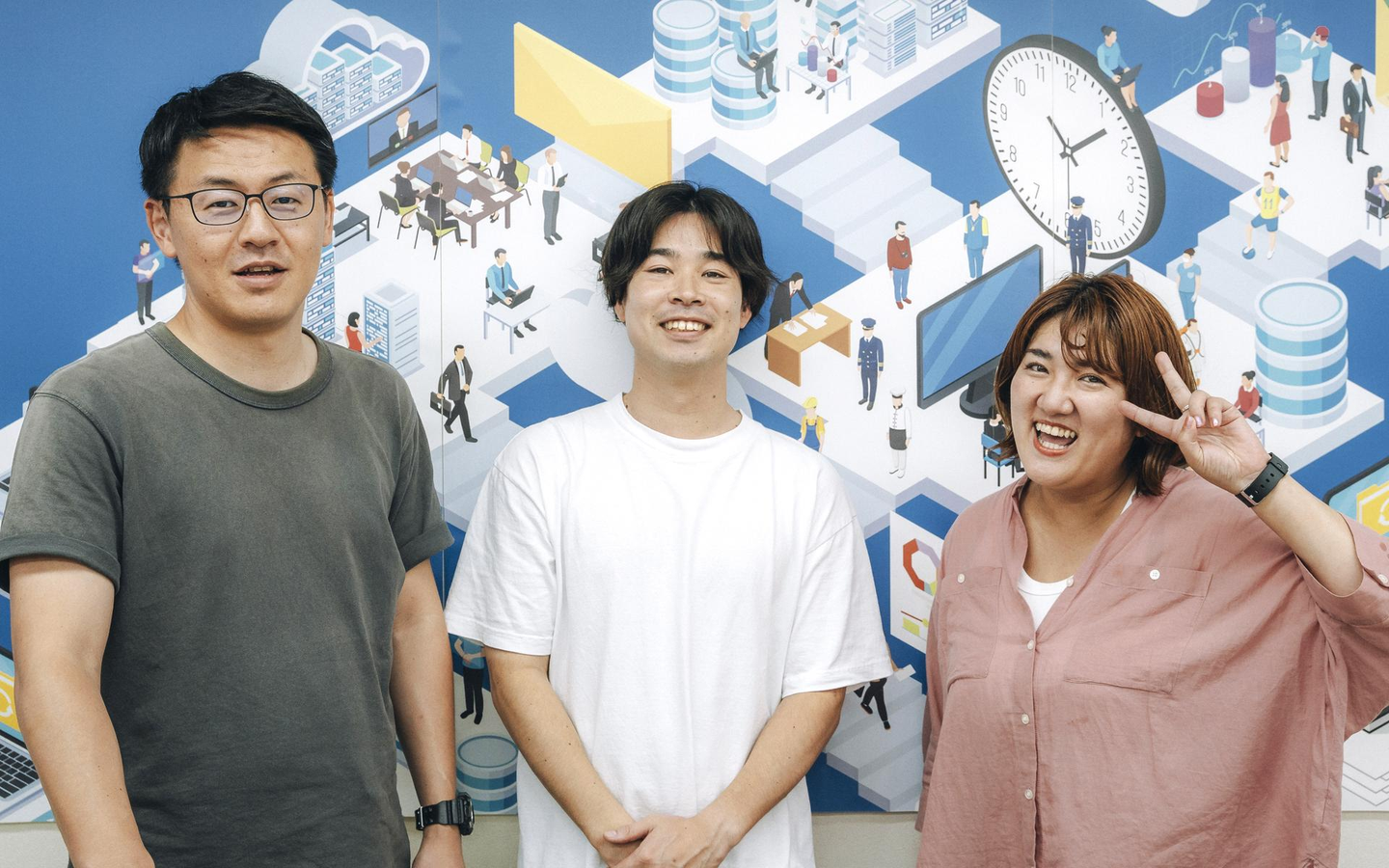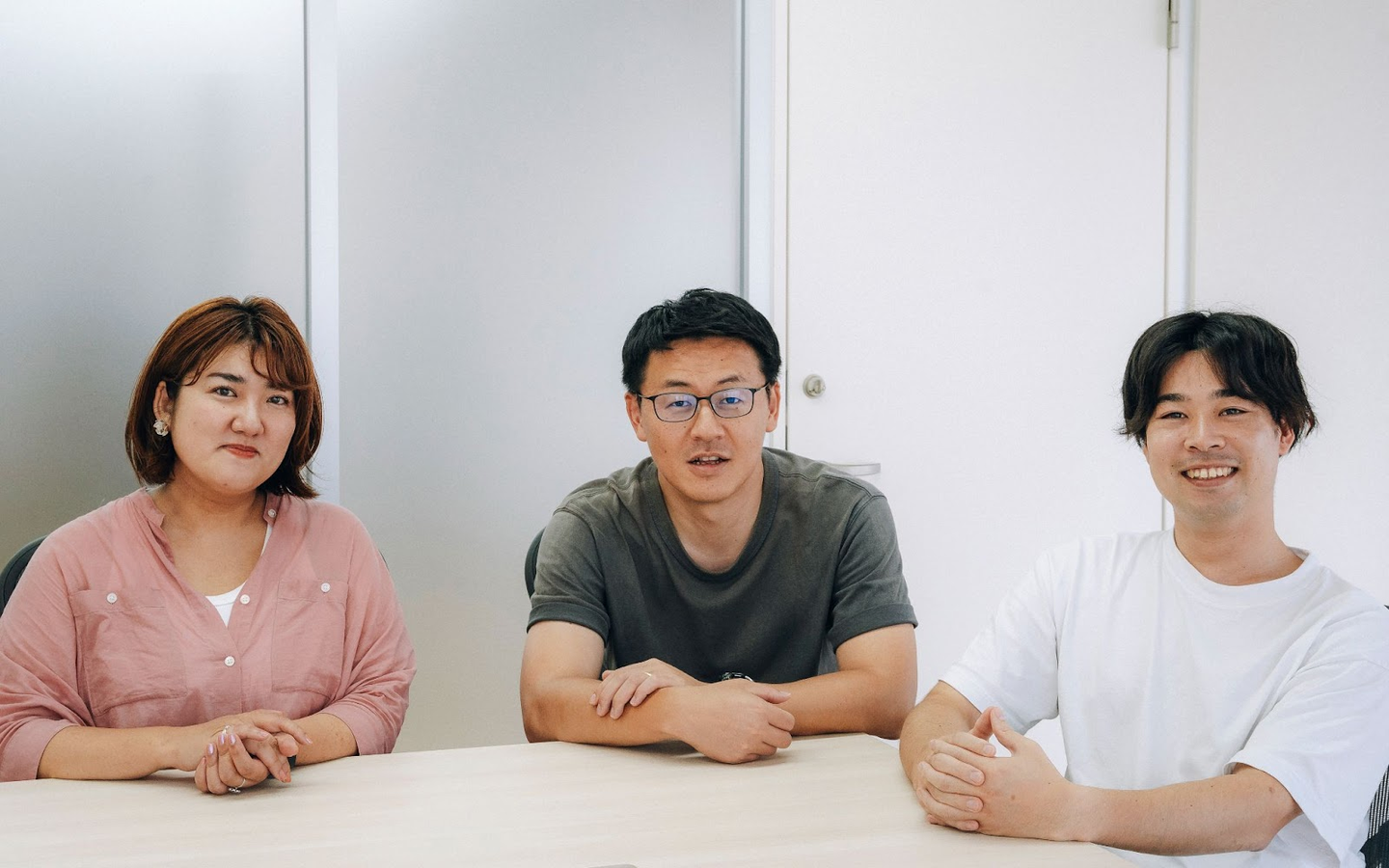 地元高知を愛するミクチャ事業部のN(写真:右)と、兵庫出身のジョブカン事業部K(写真:左)、高知に魅了されて東京から移住した高知オフィス長O(写真:中央)との座談会を通じて、高知オフィスの様子をお伝えします。