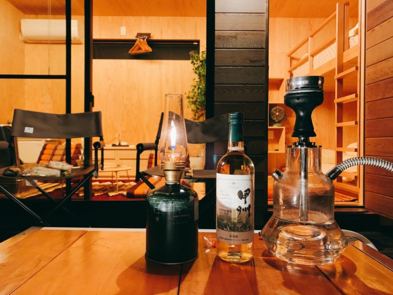自然に囲まれた場所で煙を交えながら飲む甲州ワインは最高でした。