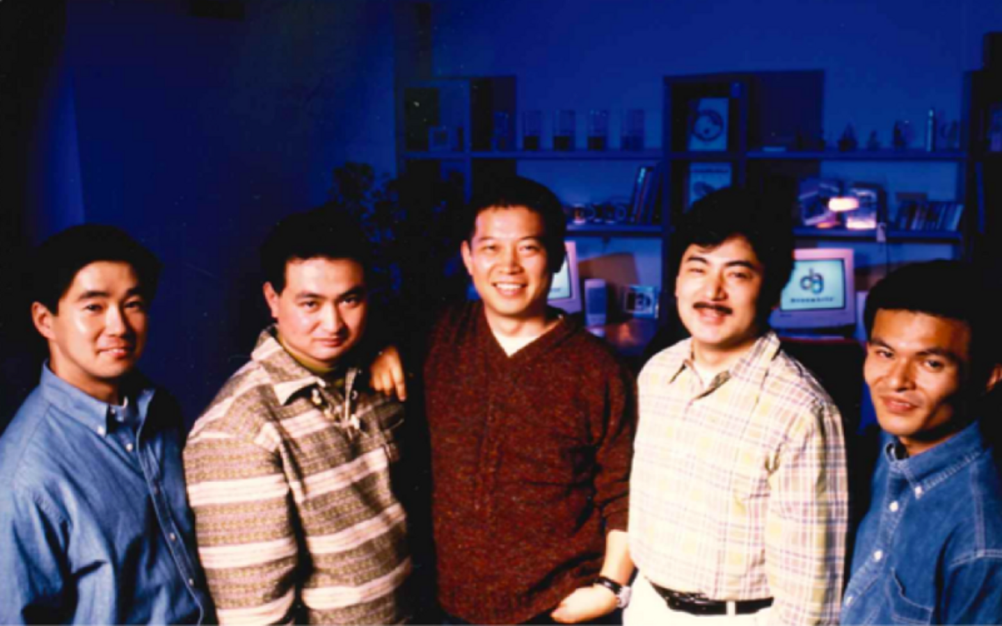 ▲ ドリーム・アーツ設立時のメンバー。代表の山本(中央)と前川(中央左)