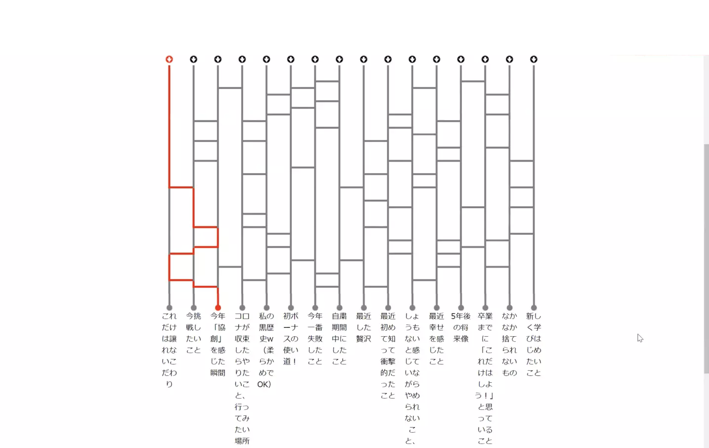 内定者が順番にくじを引き、あたったトークテーマについて話します。
