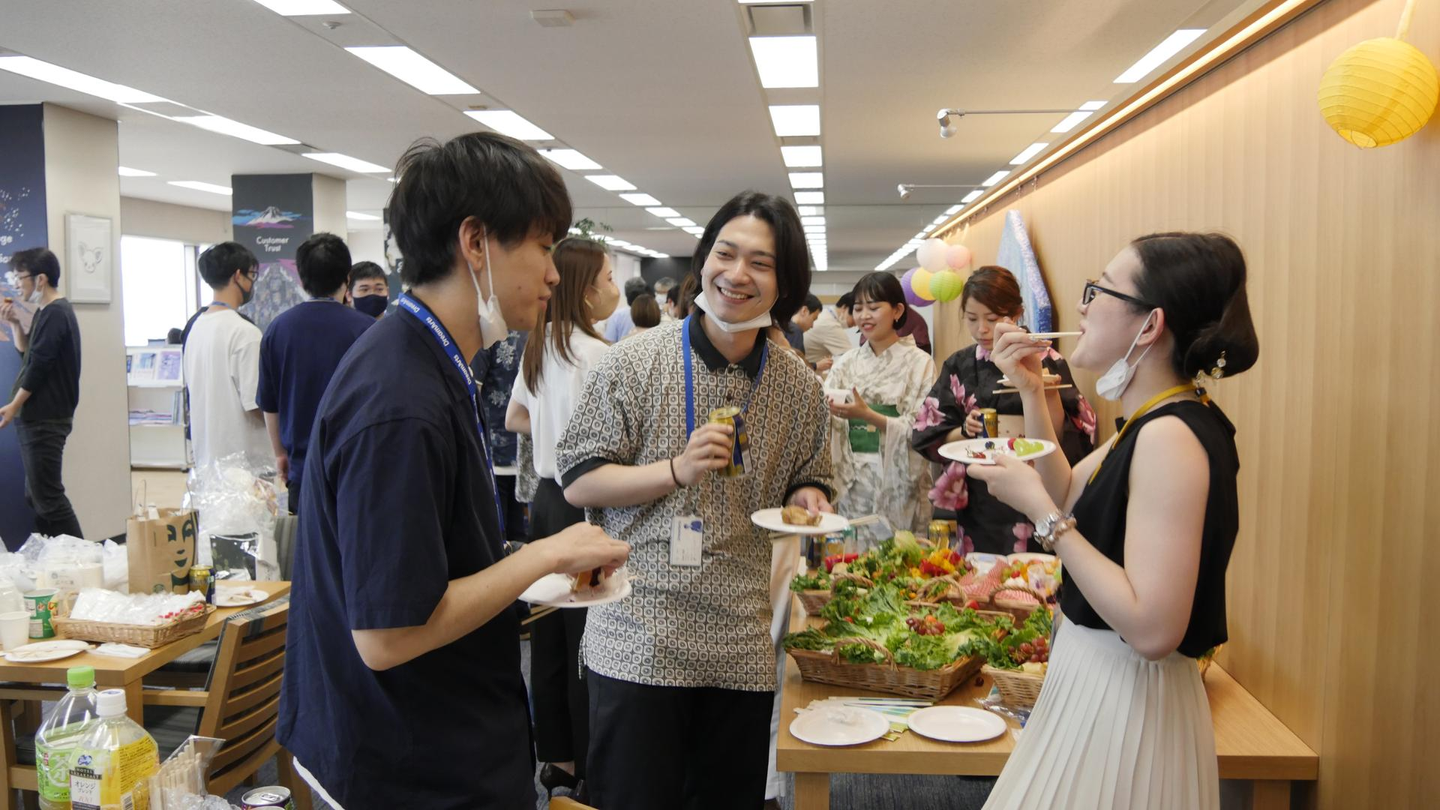 サンドウィッチや七夕限定のスイーツを食べながら、社長の山本さんも参加する社内バンドのセッションや、マジックといった出し物、浴衣での参加者がいたりと大盛り上がりでした。