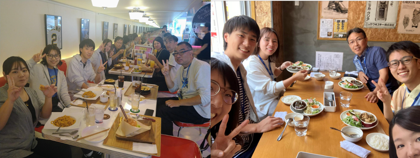 期間中数回、2チームに分かれて那覇の先輩メンバーとランチ会を実施。オフィス周辺のおススメのお店に連れて行ってもらいました。研修担当メンバー以外との交流もでき、新人たちもいろんな先輩と話ができたことでしょう。