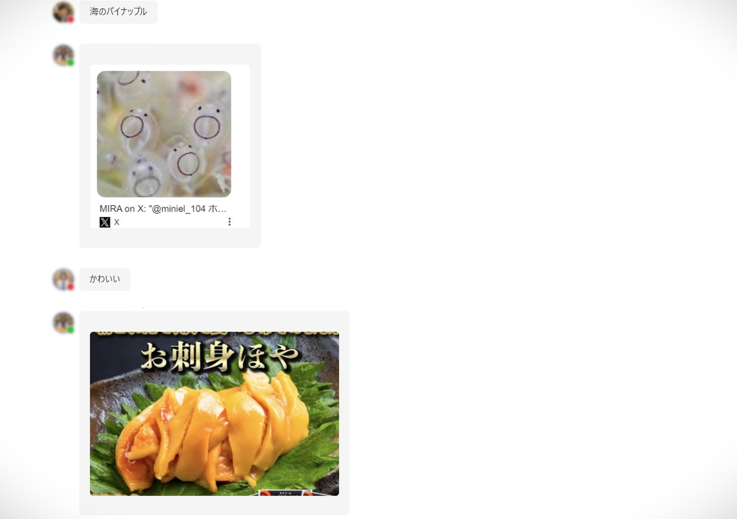 もう一つ驚いたのはみんなのチャットでのラフなやり取りです(笑)