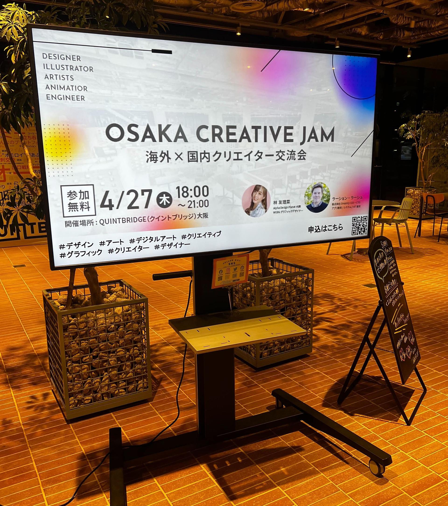 2023年4月27日、大阪府大阪市にある”QUINTBRIDGE「クイントブリッジ」”(NTT西日本が運営するイノベーション施設)にて、海外クリエイター✖️国内クリエイター交流会『Osaka Creative Jam #01』を、Alpha Design Planet 代表・林 友理菜 氏と共同開催し、多くのデザイナーやクリエイターの方々に集まっていただきました。