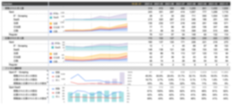 時系列で各メトリクスの動きが見れるようになっており、時間軸は月次・週次・日次があります。特に重要なメトリクスについては、セグメントごとに分解して見ることもできるようになっています。