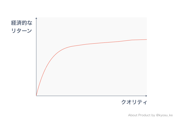事業の種類にもよるけれど、一般的にはクオリティの向上がもたらす経済的なリターンは早晩サチってしまう(=サチュレーション、成長グラフが寝る)