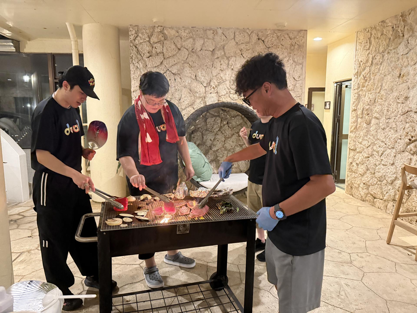 1日目はヴィラでBBQを実施しました!綺麗なヴィラにテンションを上げつつ買い出ししてきた食料たちを焼いていきます。