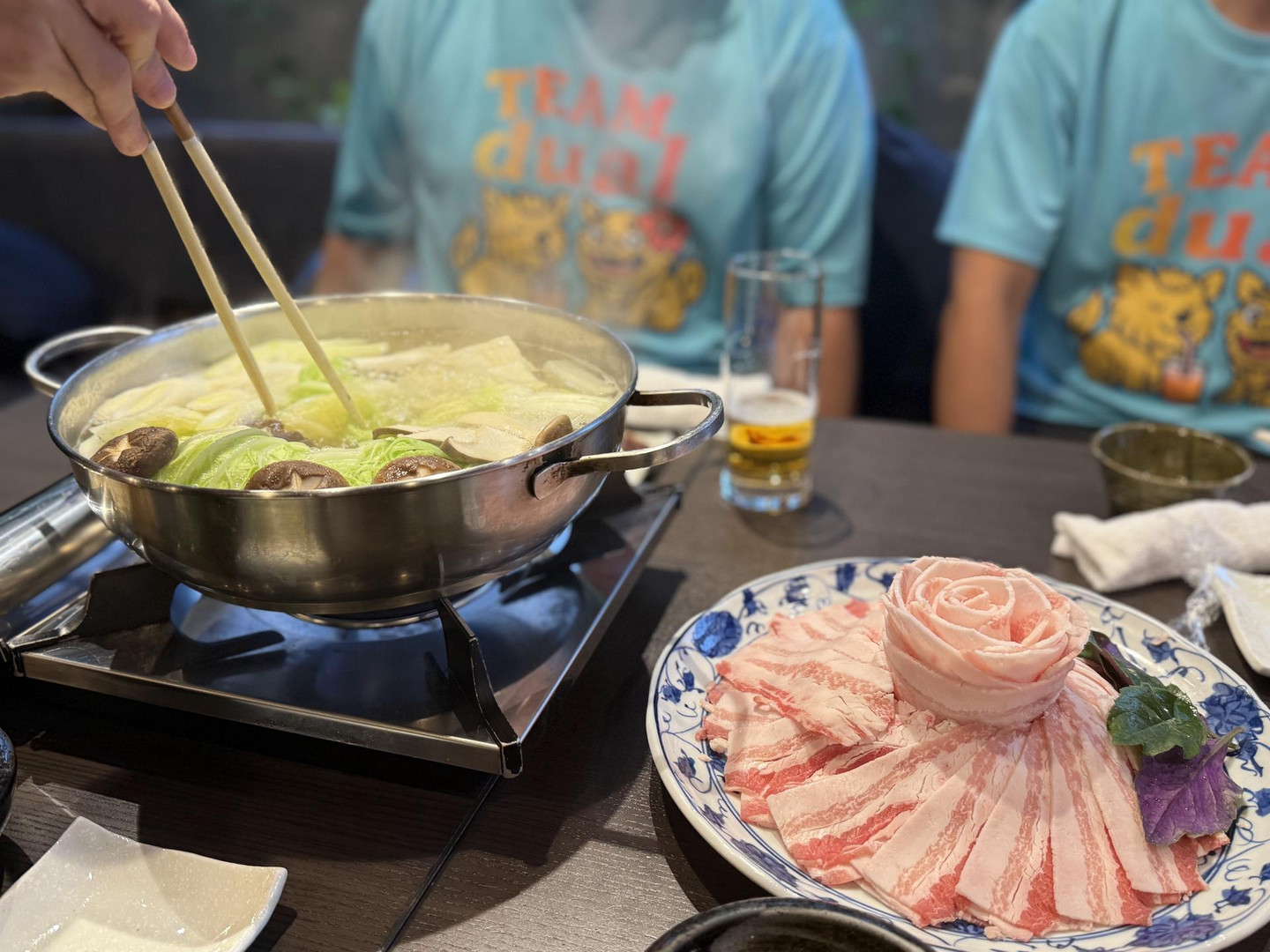 那覇組は気合いを入れて予約を行い、有名店のまつもとにしゃぶしゃぶを食べにいきました🐖