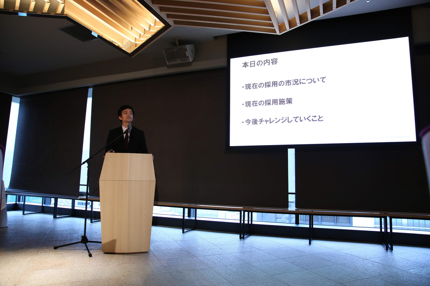 第一部では事業マネージャー、人事、役員、代表からメンバー向けに発表を行ないました。