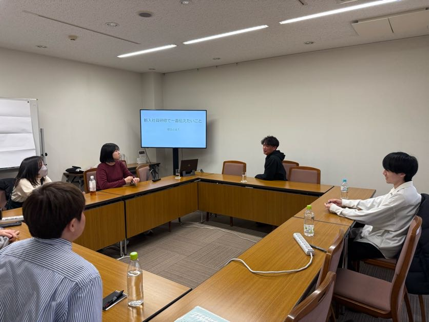 社長おすすめメニューのうどんも堪能し、満腹になったところで、新入社員は理念研修へ。