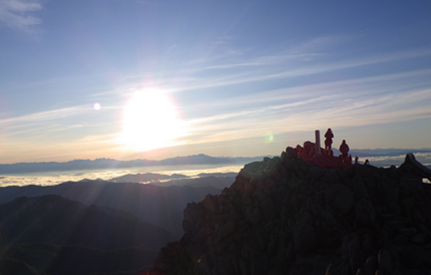 日本三大霊山の1つ、白山 2702m。雲海に浮かぶ太陽が眩しい
