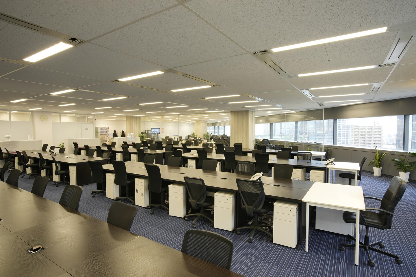 普段 多くの社員がこの執務スペースで業務に取り組んでおり、ワンフロアで仕切りがないため 他部署とも連携がとりやすく、社員全員が一丸となってコミュニケーションの取れる環境となっています。