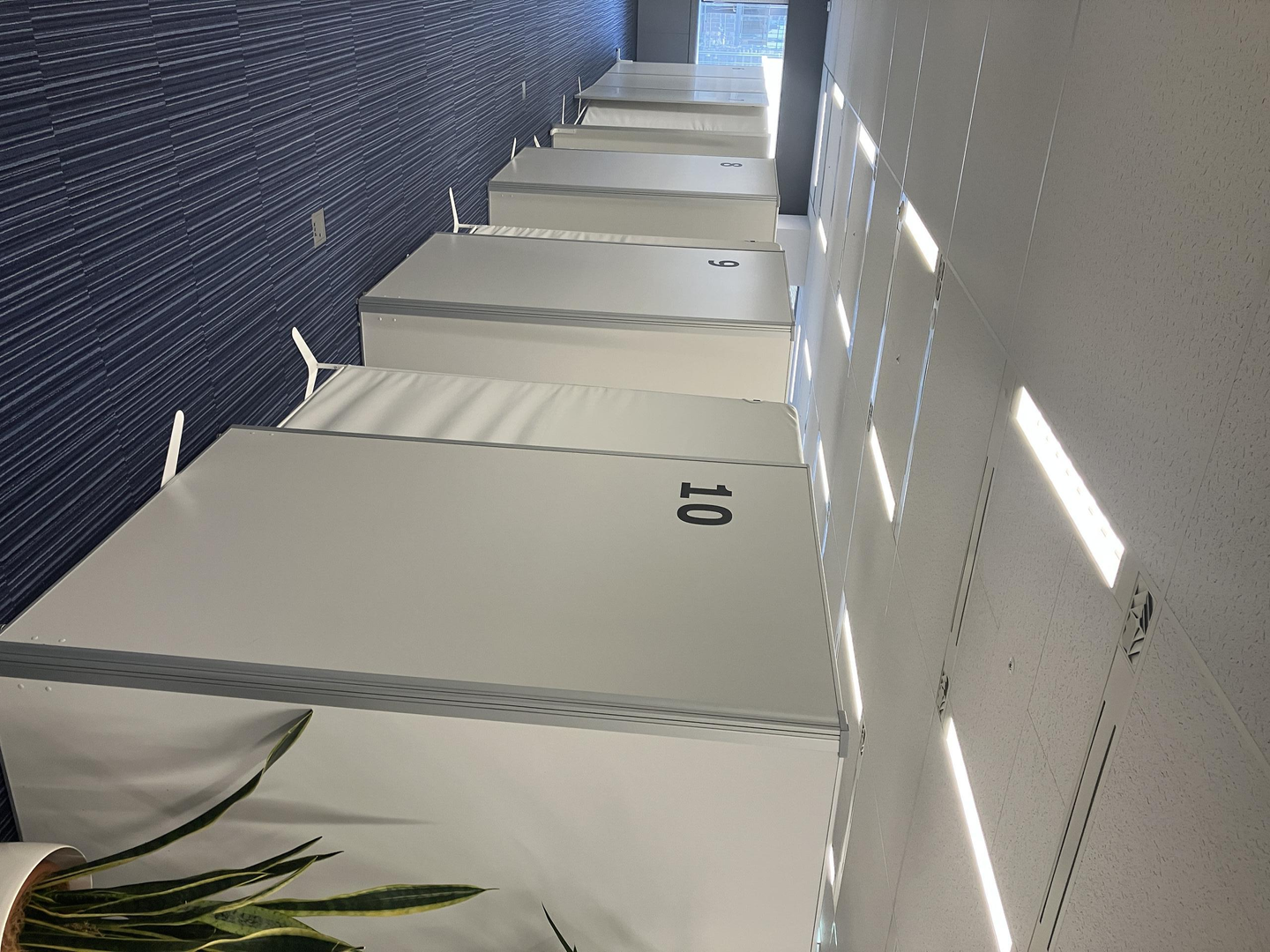 コロナ禍でオンライン商談や面接が増加したことにより、社員からは「個別ブースが欲しい」という声もあり、合計15個のオンライン用BOXを設けました。