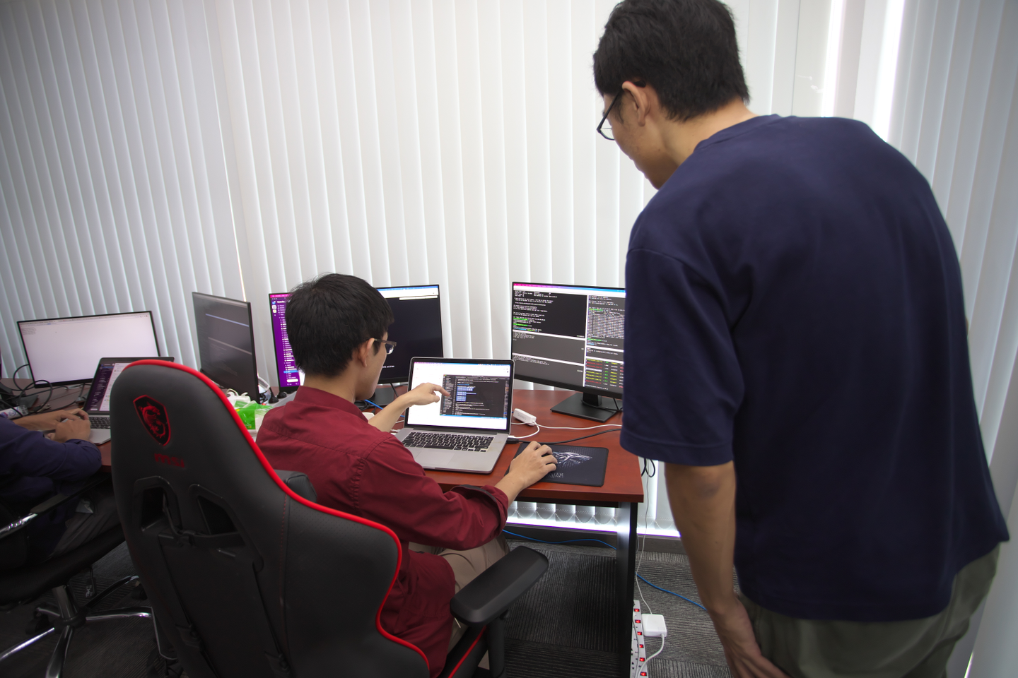 入社してから1年半が経ちました。それまでの私のPC歴は小学生の時にWindows95‘が発売し、父が購入したそのコンピューターをポケモンの攻略法の情報収集などに利用したことから始まりました。その後、自身でプログラミングを学んでいた時期もあります。しかし、職業としてITエンジニアの仕事をした経験が全くなかったため、弊社での私の業務は初歩的なタスクからスタートし、それを行う過程で必要なことを習得できるように進んでいきました。ここではスタッフ一人一人に対しての人材育成のステップがあり、着実に成長していけると思います。日本人、カンボジア人のプロフェッショナル達と一緒に働いているので、何かわからないことがあったらすぐに会話できる環境もあります。現在、弊社ではシステム運用チームと開発チームに分かれており、私はシステム運用の業務をしています。