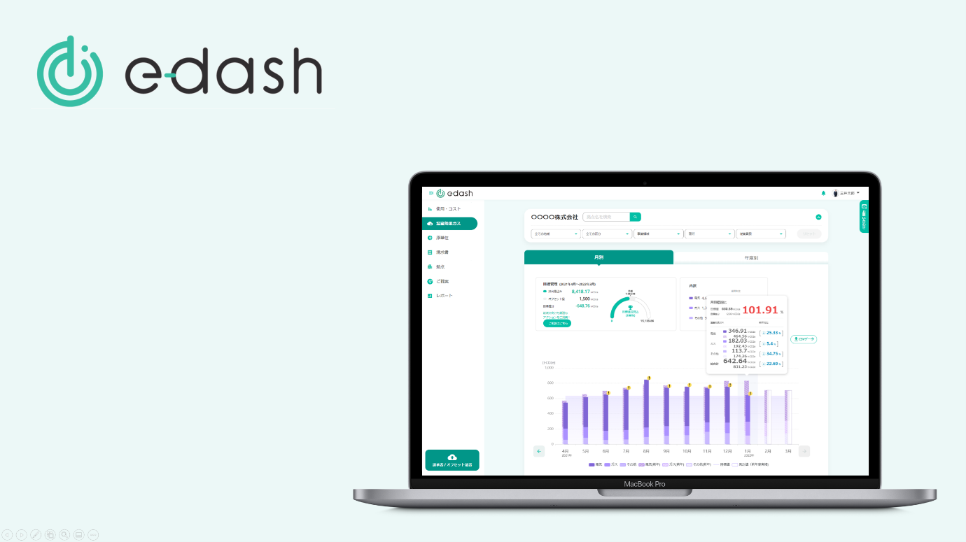 弊社のミッションは「脱炭素を加速する」で、社名と同じプロダクト・e-dashは、企業や自治体むけにCO2排出量を可視化するクラウドサービスです。開発に当たって何百という企業にインタビューをさせていただいたところ、脱炭素に取り組みたいものの、どこから手をつけたらよいのかわからないという声を多く聞きました。まずはどれだけ排出しているかわからなければ、削減することもできないのでは…。そう考え、最初の一歩である“CO2排出量の把握”からご支援することを決めました。
