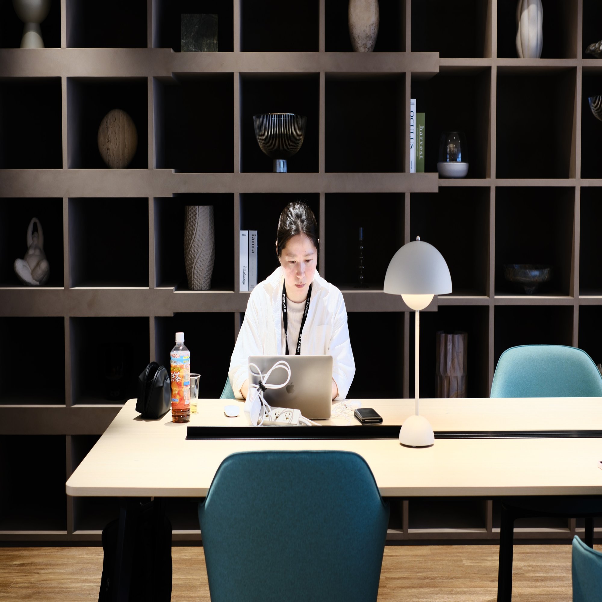 山崎:担当いただいたデザイン会社のご担当者がコーポレートブランドを丁寧に表現してくれたのもあります。全体の色合いはコーポレートページに合わせて落ち着いた感じに、細い電飾で表情したダッシュ感、さらには本棚にもちょっとした仕掛けがあるんです。気づくかな?