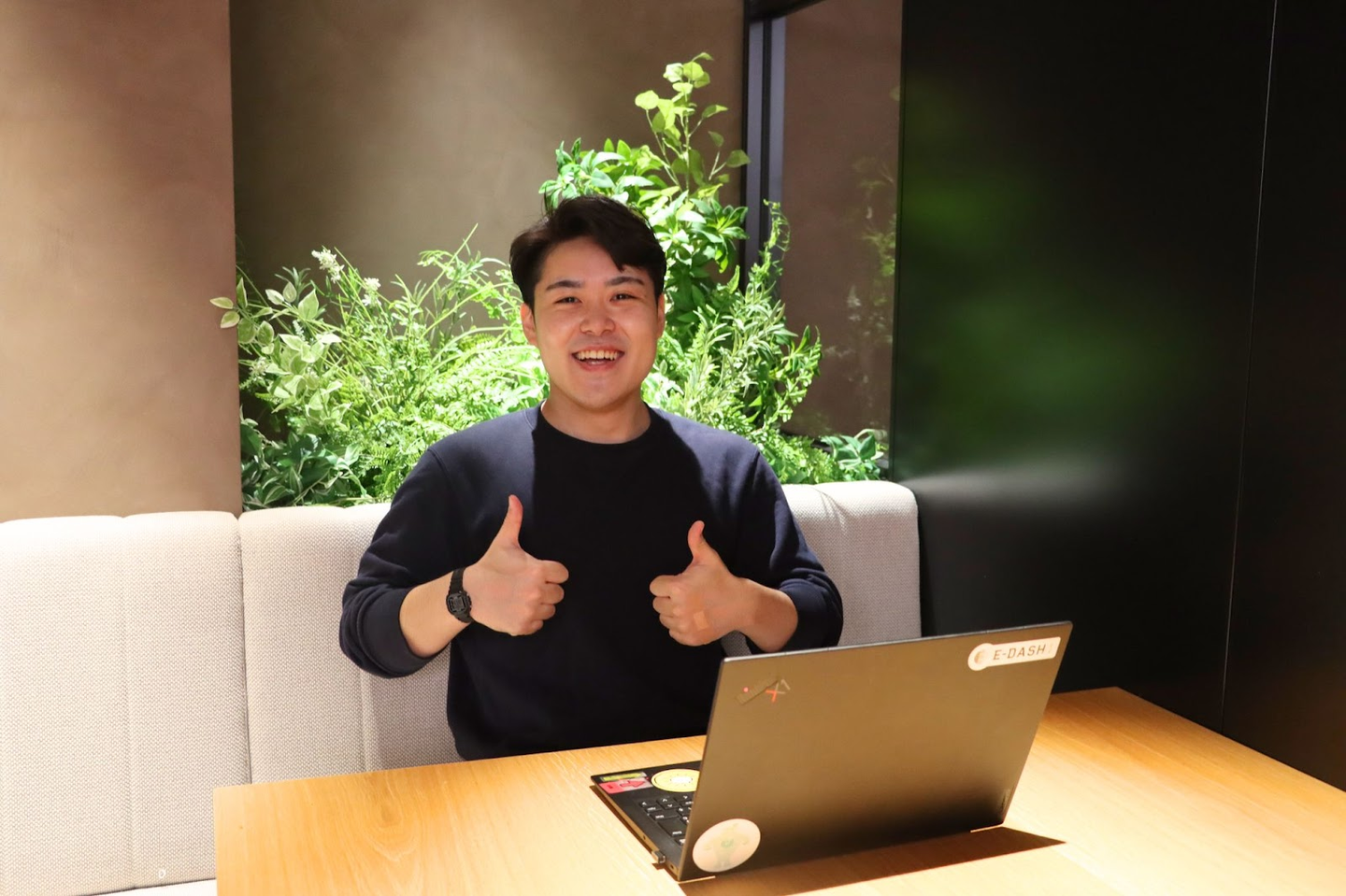 インターン企業先の選定は、当初は「特定の業界でインターンをしたい」という強い意志はなく、単にいろいろ経験できたり学べたりしながらお金を稼げる場所であればどこでもいいかなという感じだったんですが、たまたま三井物産のエネルギーソリューション本部からの出向でe-dashで働かれていた方と話す機会があり、e-dashのことを紹介してもらいました。そんなご縁を大事にしたいと思い、e-dashの面接を受け、実際に働くことになりました。