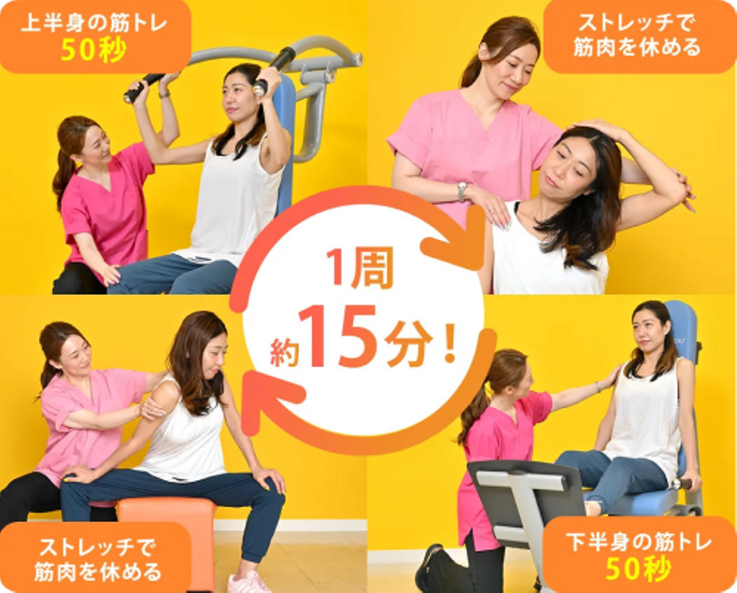 女性専用フィットネス「フィットネス&ストレッチ 健康の森」は女性専用の30分通い放題フィットネスです。マシン運動とストレッチを約1分ずつ交互に繰り返すことで柔軟性と筋力の発達をサポートします。毎月変わるストレッチメニューが人気です。