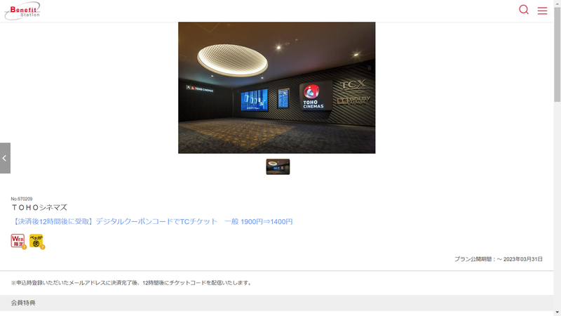 割と好きで観に行くことが多いのですが、このBenefitStationのサービスで割引チケットがありそうだったので、さっそく探してみます。