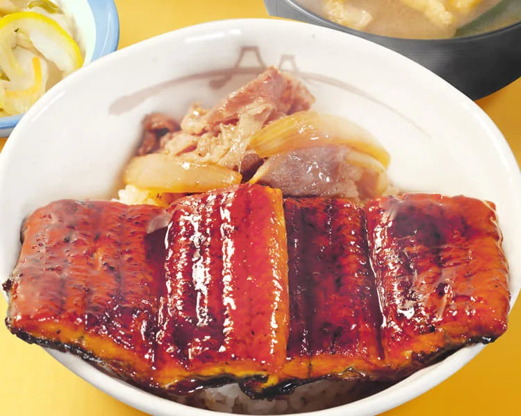 せっかくだからと欲張って「松屋のうなぎコンボ牛めしダブル」という、牛丼の牛肉が一緒に乗ったこちらをチョイス(画像はHPから拝借。写真を撮るということをまったく思いつかずに普通に食べきってしまったので…笑)