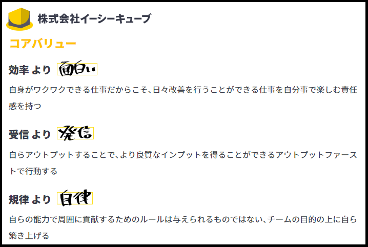 株式会社イーシーキューブは「受信より発信」ということを企業理念のコアバリューのひとつに掲げています。