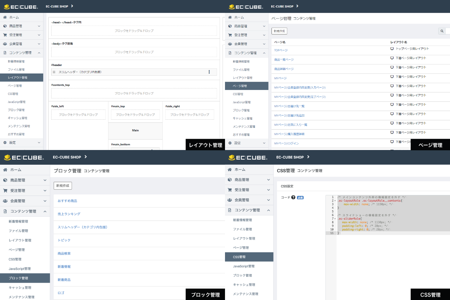 [レイアウト管理][ページ管理][ブロック管理][CSS管理][JavaScript管理] を活用します。