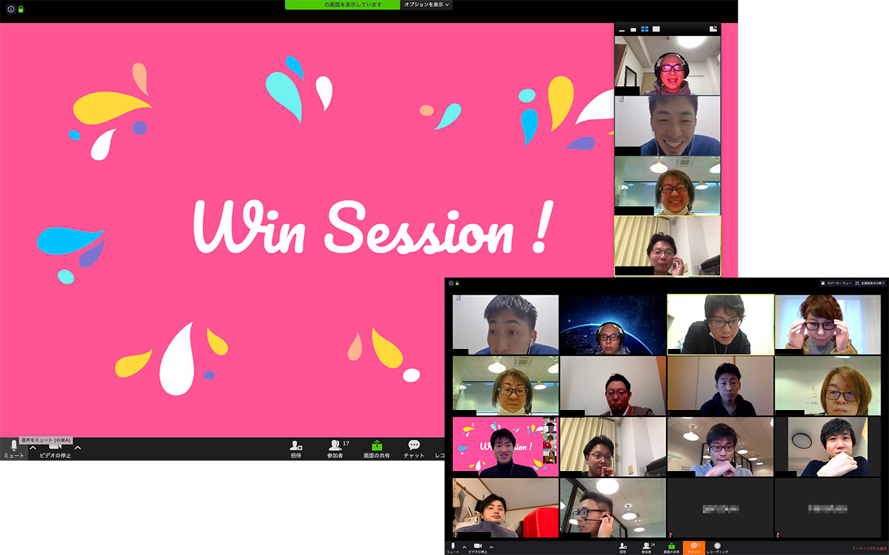 弊社では、OKRという目標管理フレームワークを採用しているのですが、その際にWinSessionやチェックインMTGといった多人数で集まる必要があり、その点がリモートだと可能かと不安な面もありましたがZoomなどビデオ会議で問題なく可能でした。ただ進行やルールなどは決めた方がいいですね。リアクションとして大きなジェスチャーをする、チャット活用や、発言のタイミングなどファシリテーターが重要だと感じました