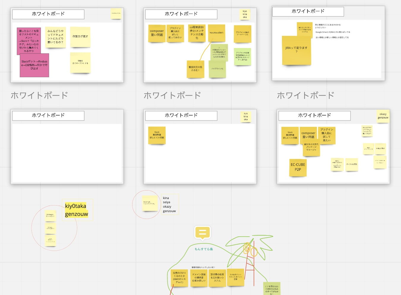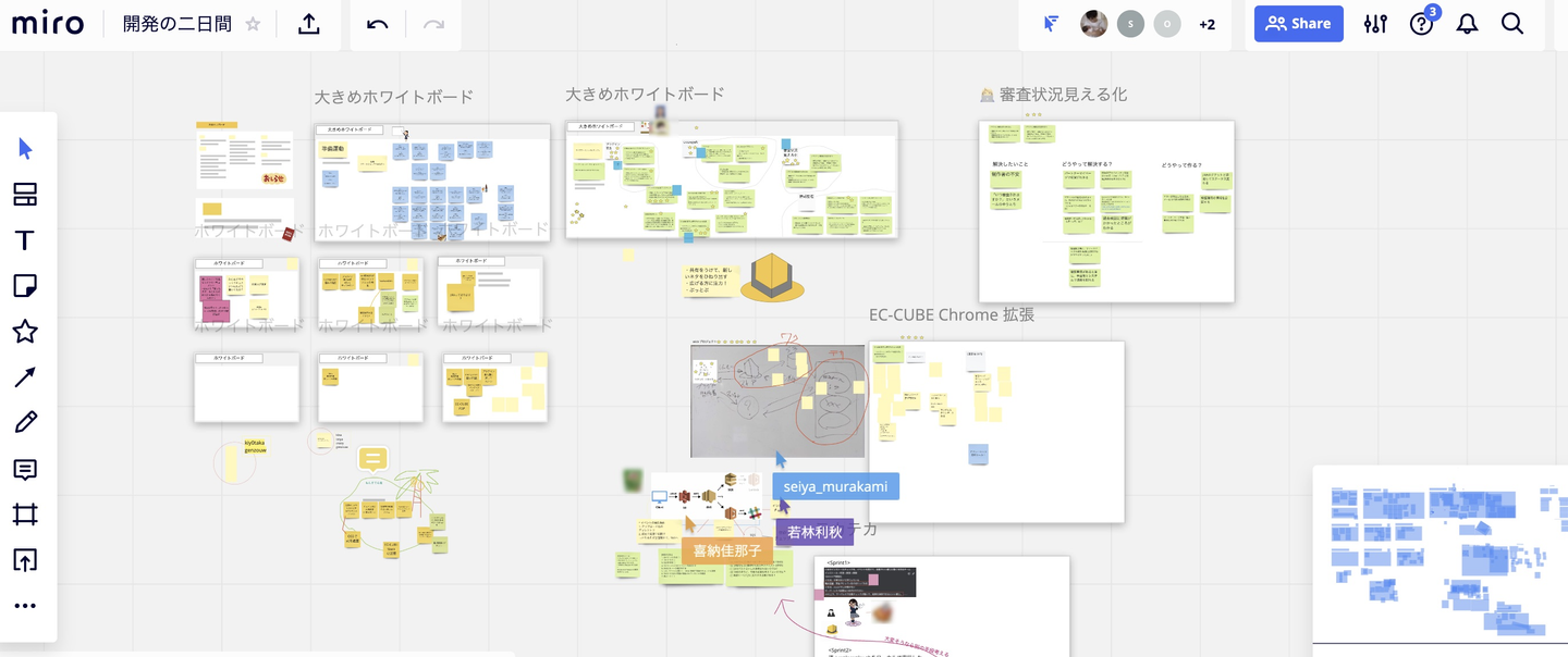 miroでは画面を広くつかうことができ、ホワイトボードもどんどん増やしていくことができます。隣のチームで作業している様子を覗いたり、miroを見ながら会話はDiscordで行うなど、思ったよりスムーズにコミュニケーションすることができました。