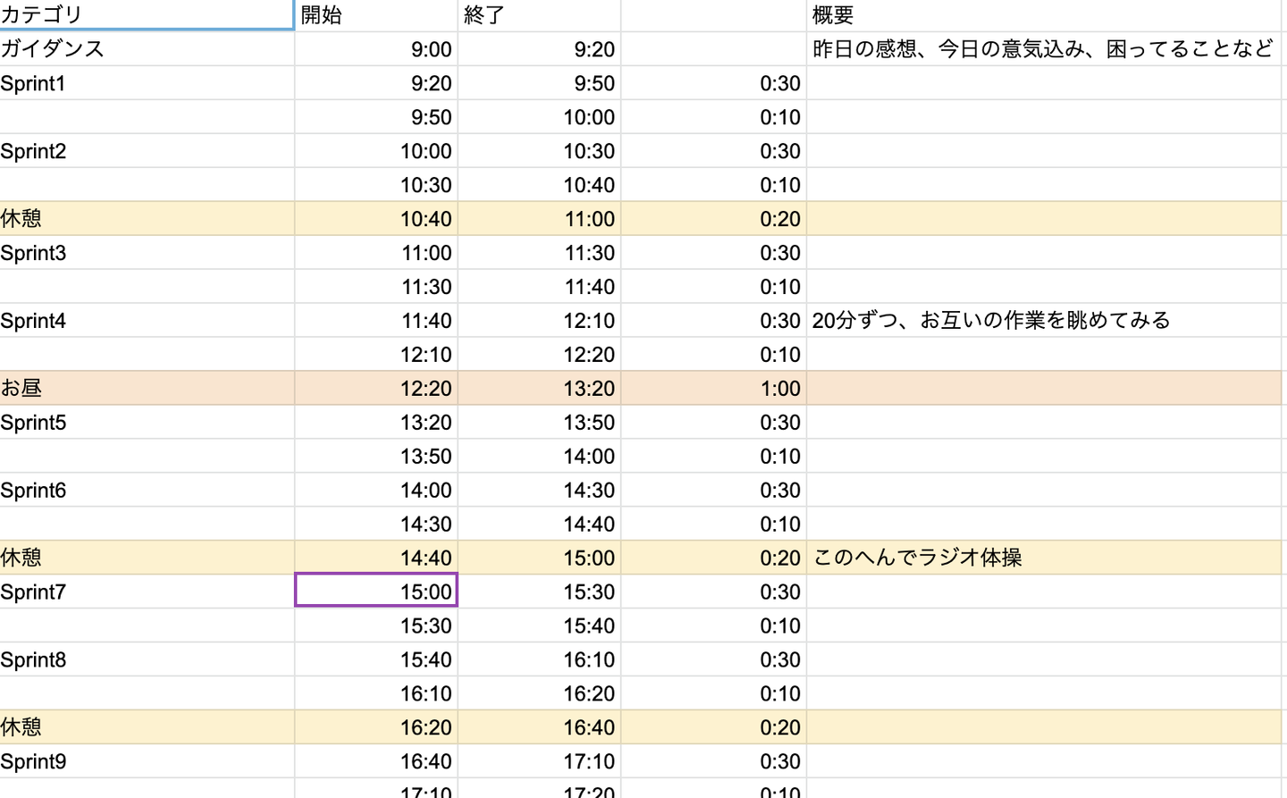 タイムスケジュール