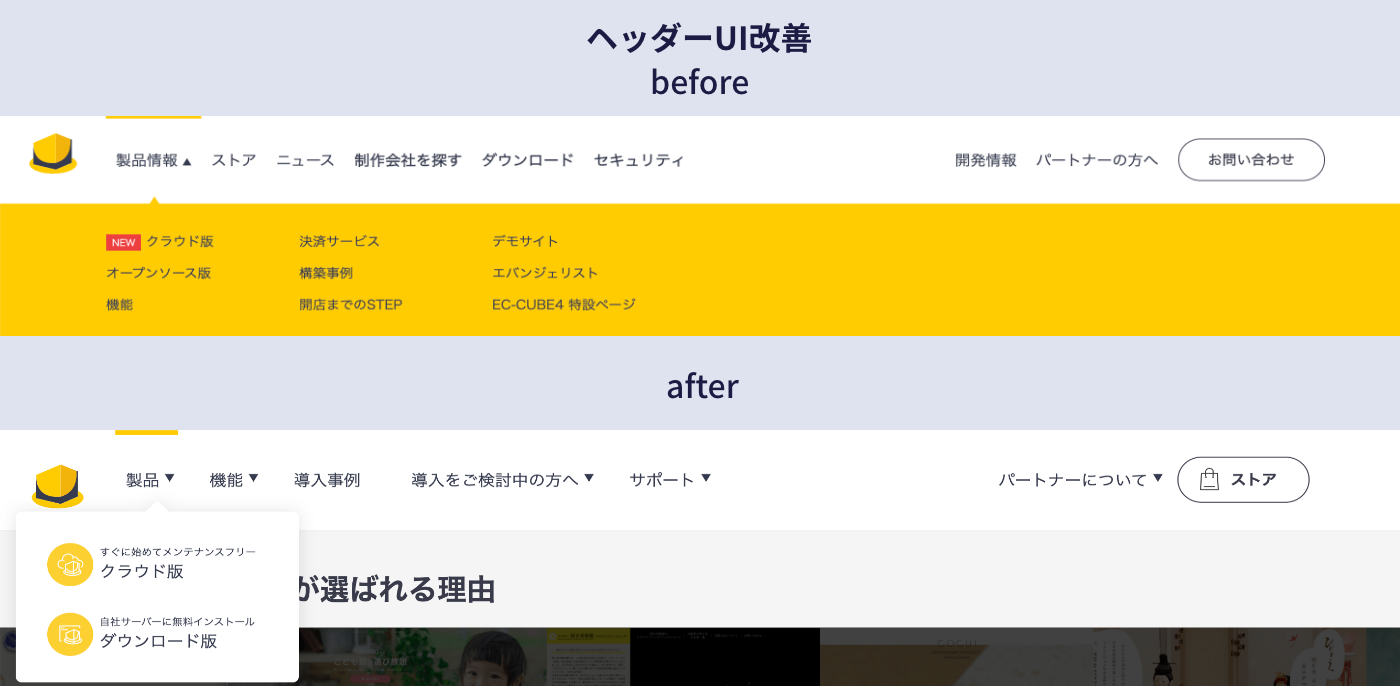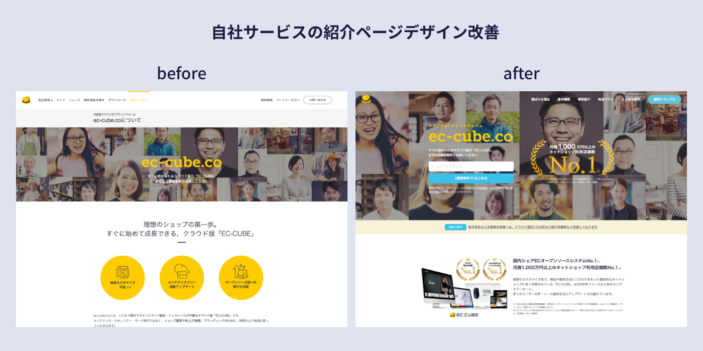 過去に行った施策では、自社サービスのクラウド版EC-CUBE「ec-cube.co」のページ周りの見た目やUI改善で、CVRが2倍になりました。