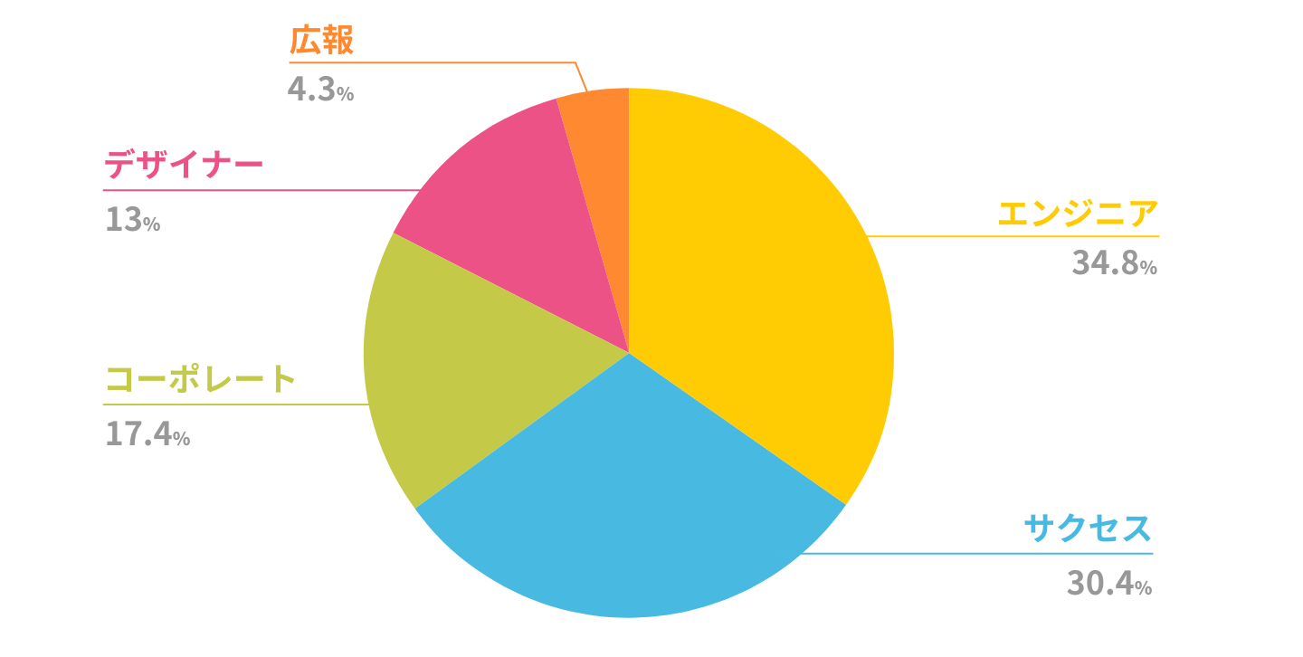 自社サービスを運営しているのでエンジニアが多いです。