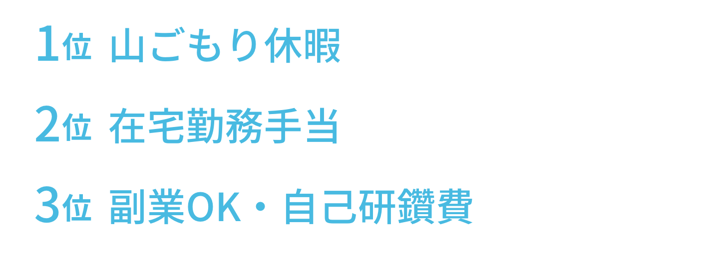 9連休まとめて取得できる山ごもり休暇がやっぱり人気!3位は同率でした。