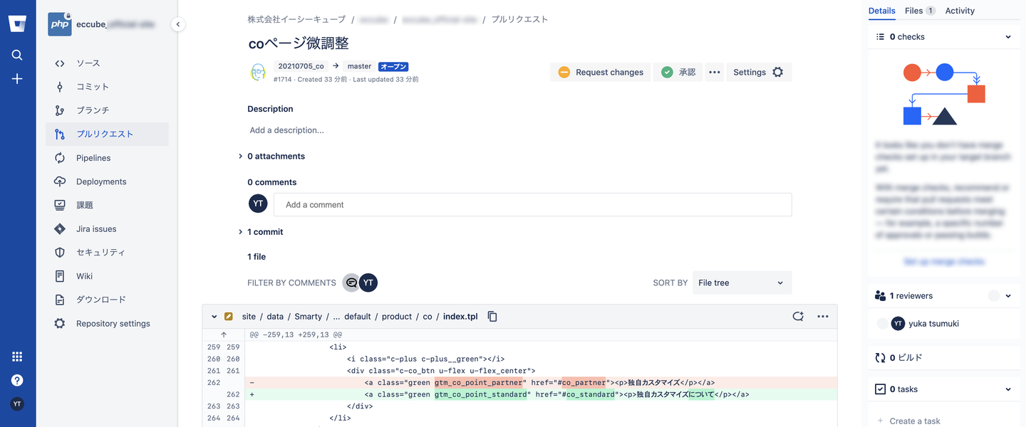 Git管理システムです。オープンソースのEC-CUBE本体とは違い、社内で開発するプロジェクトに使用しています。例えば、オフィシャルサイトの更新やストア開発などに使用しています。