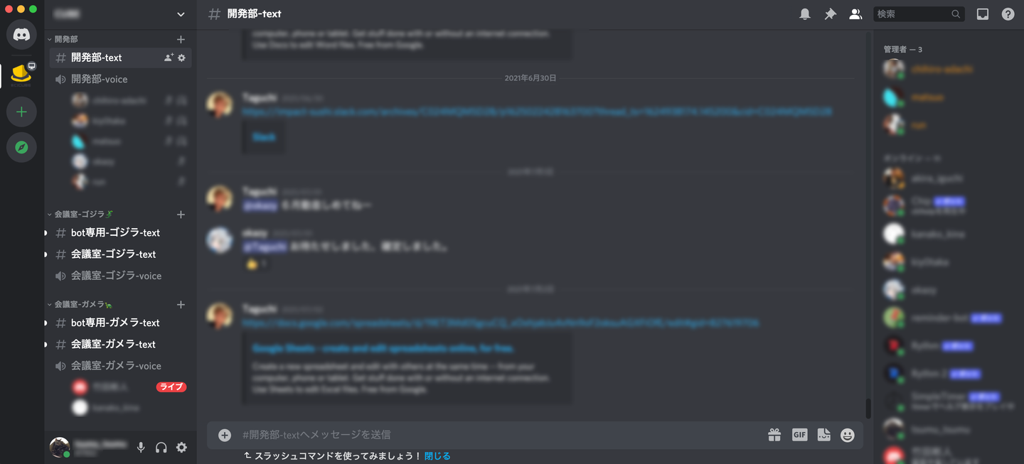 プロジェクトごとにルームがあり、常にメンバーがルームにいる状態です。
