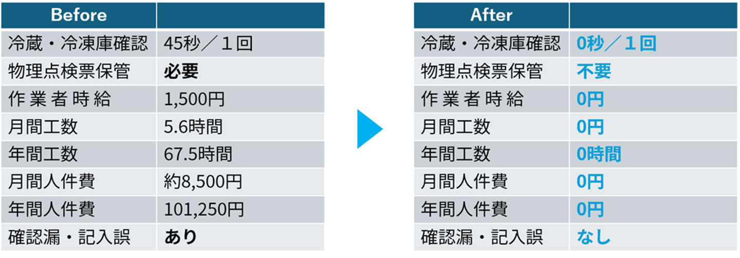 空いた時間を別の高付加価値業務に充てられますし、常時計測による「点検忘れゼロ」「改ざん防止」「異常時アラート」など、HACCP運用の信頼性も高まります。