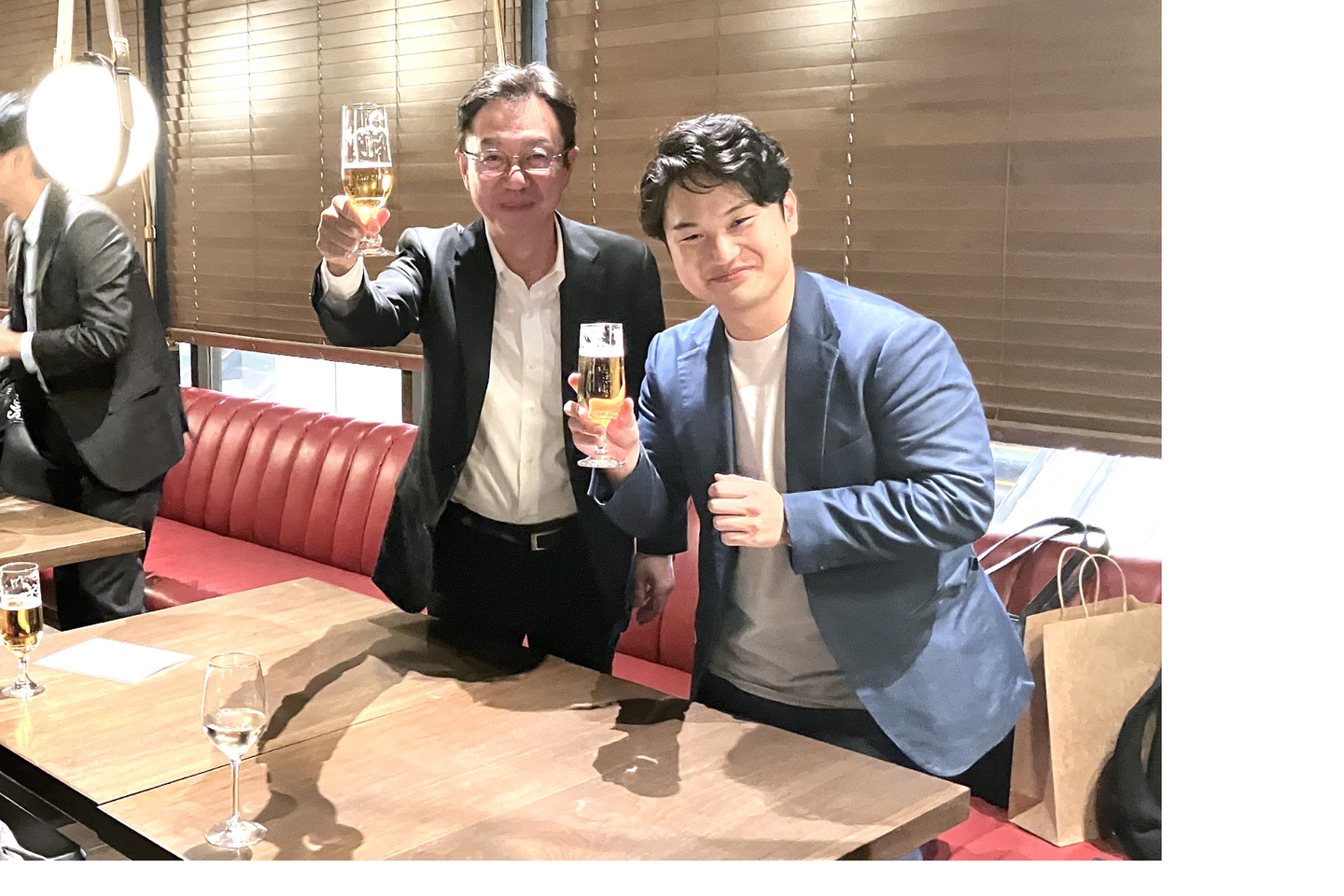 【乾杯をする柴田常務とアワード受賞のA.S.さん】