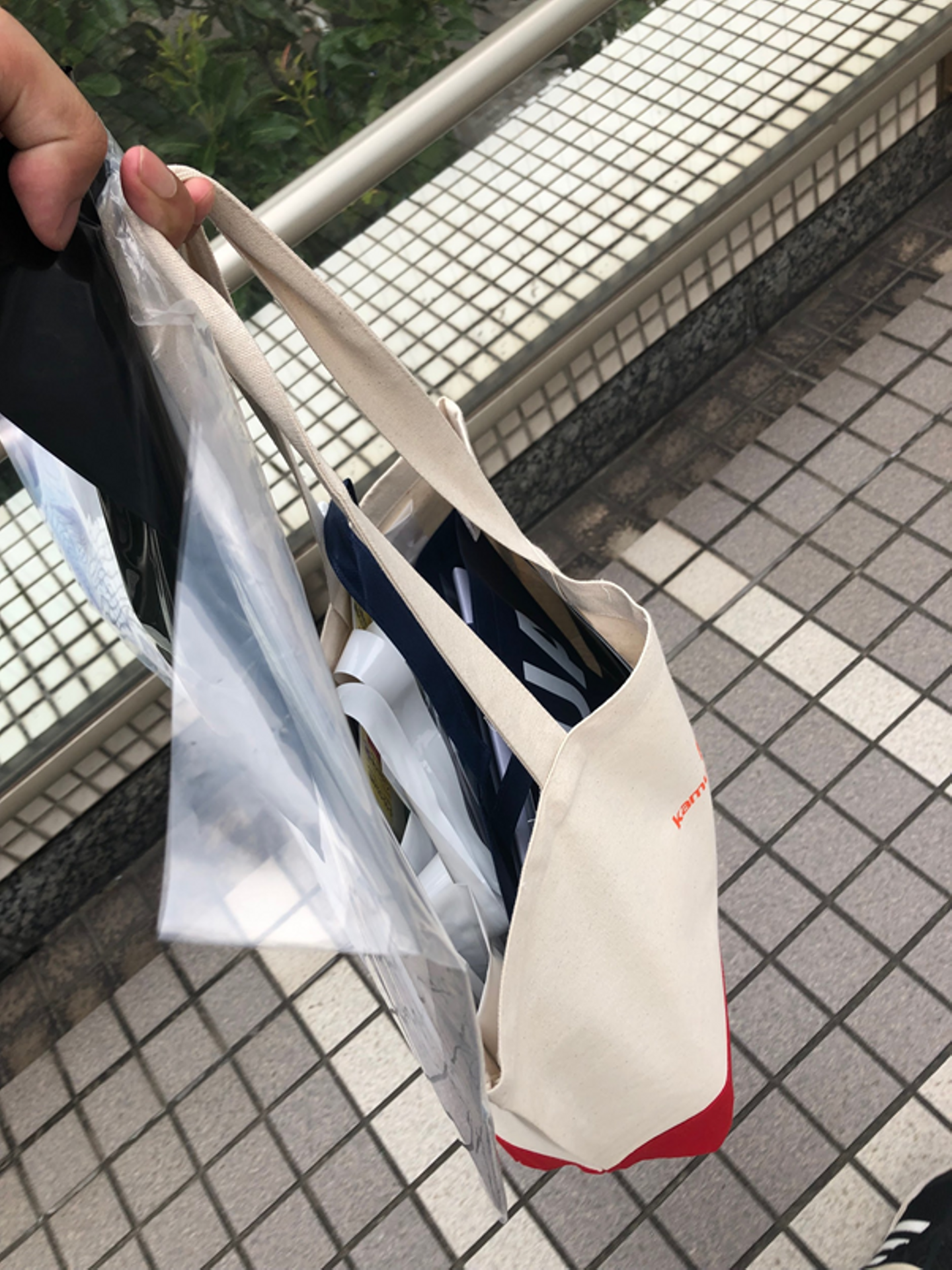 会場を後にするころにはカバンがパンパンになっていました!TGSでの配布物は、エナジードリンクやお水などの飲み物、広告や情報誌・パンフレットなどの印刷物、ピンバッチやうちわなどのグッズまで様々でした。試遊などをしながら約5時間ほどかけて、HALL1~11全てを見て回ることができました!