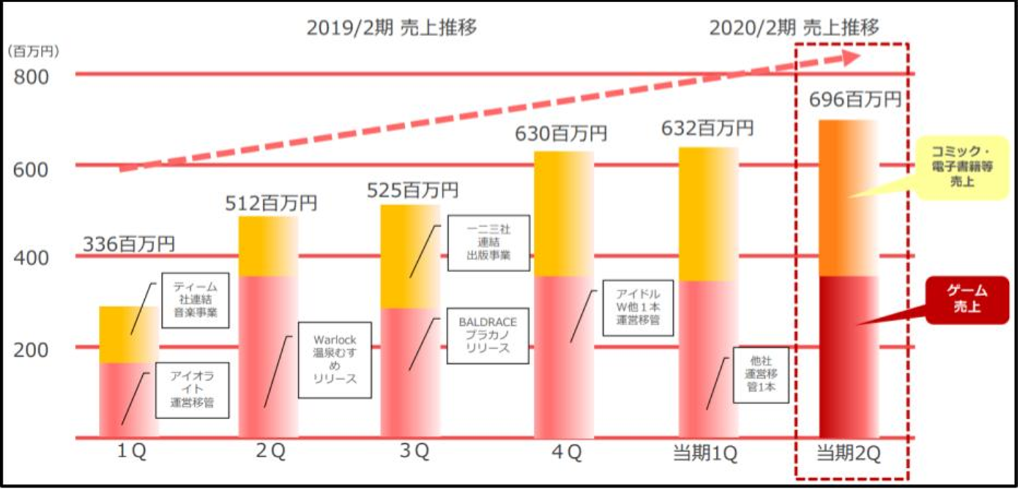 賀島「上記グラフの通り、ゲームもしっかり売り上げを伸ばしています。さらに新規タイトル「和奇伝愛」も継続開発中です。」