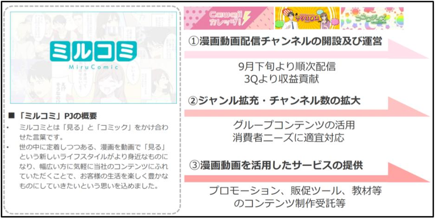 ポイントは3つの成長戦略に関する展開と新たに始めた漫画動画事業です。