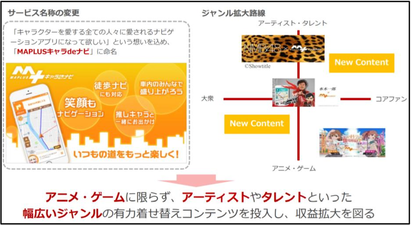 賀島「今までは主にアニメ・ゲームだけでしたが、今回のスマホ向けカーナビアプリのプラットフォームとしまして、アーティスト・タレントなど、より幅広い層を目指して展開していきます。さらに、プレスリリースでも発信しましたが、株式会社ライバーさん(動画配信をするクリエイターをサポートする企業)と業務提携を行いまいましたので、今後新しい展開を期待して頂ければと思います。」