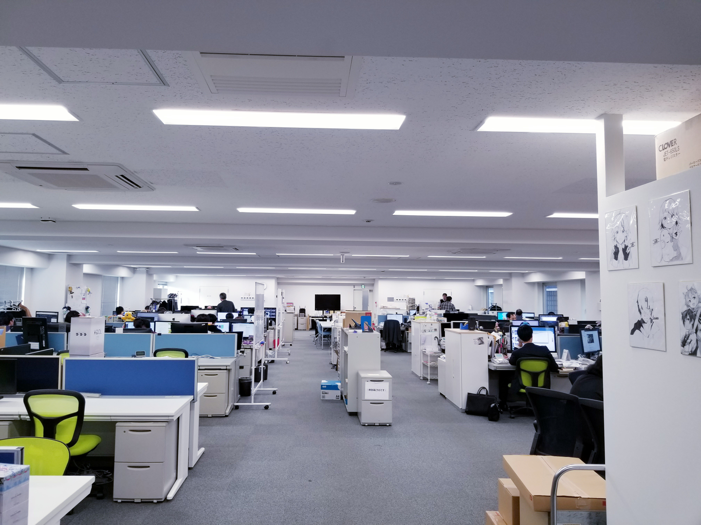 受付を通り、7Fの扉をくぐれば、そこではゲームの開発、運営などの業務を執り行っており、全員真剣な眼差しでモニターを見つめております。