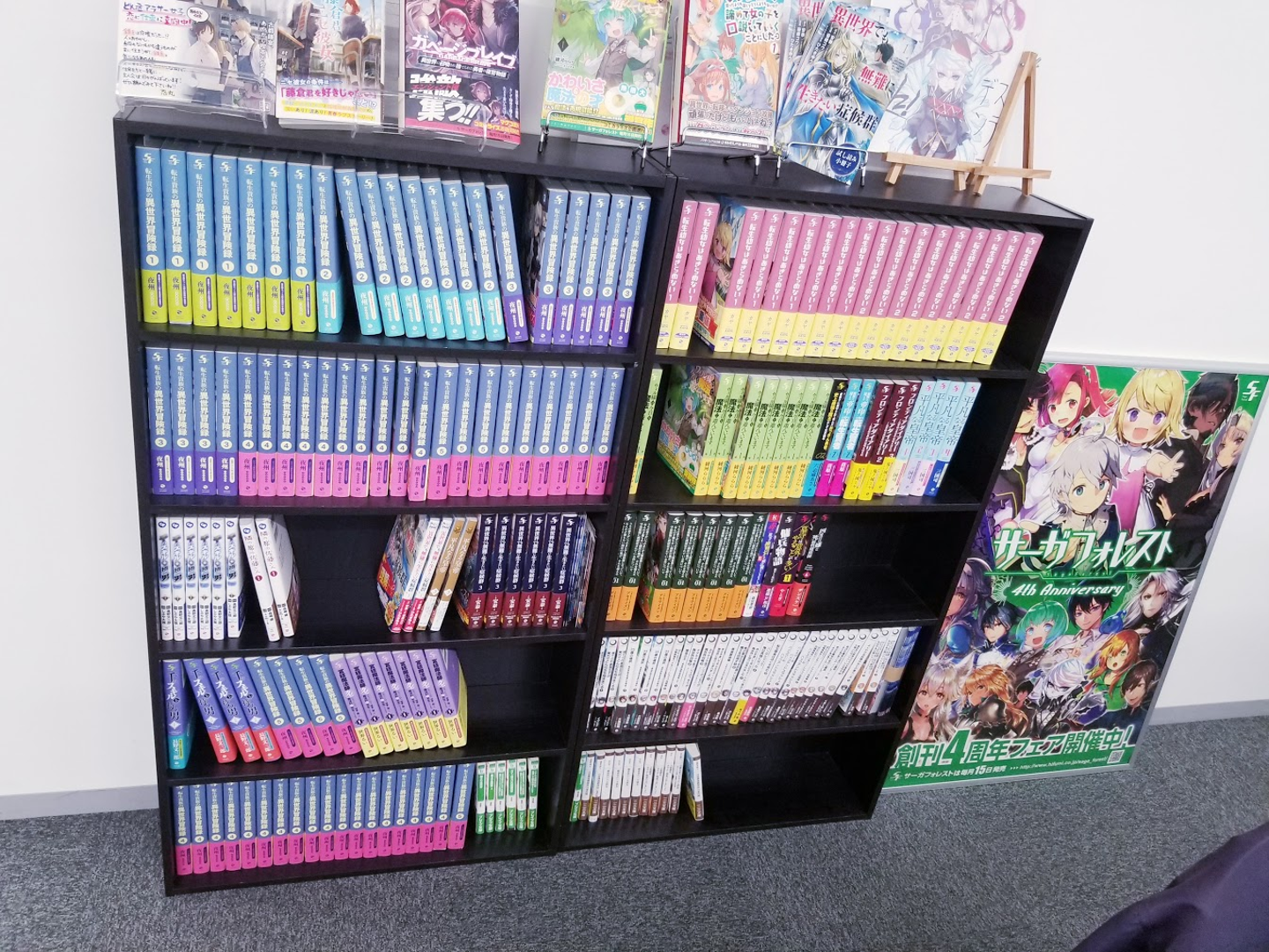 その他には、一二三書房が出版している小説やラノベなどが置かれた本棚もあります!こちらも自由に読むことができるので、小説好きの人にはたまらなく嬉しいですね♪