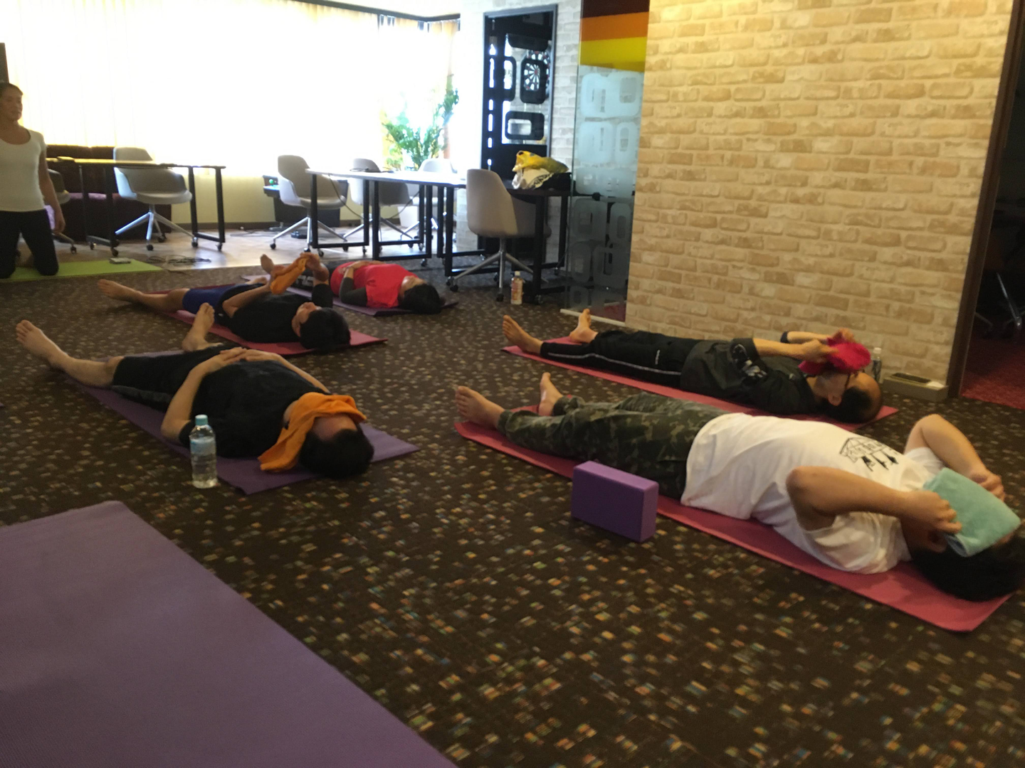 ソフトウェア開発の仕事は長時間机に座ることが多く、体を動かす機会も少ないです。当社では、ヨガのインストラクターをお呼びして、2週間に1度のペースでヨガ教室を行なっています。ヨガのあとは体も心もスッキリ!