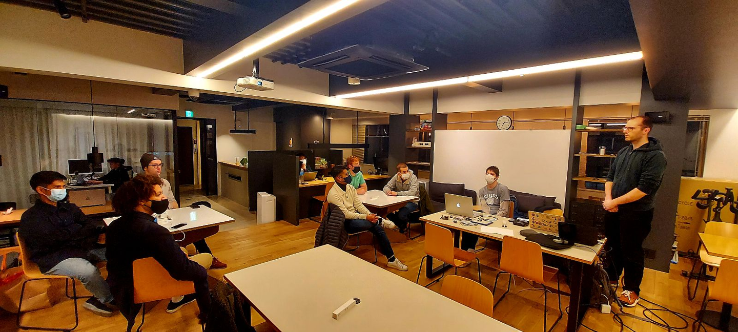 私たちは外国人起業家や高度人材支援を行うグローバルコミュニティの運営をしており、月に1回大阪オフィスで外国人のエンジニアやデザイナーをターゲットにしたMeetupを定期開催しています。毎回ソフトウェアエンジニアやIoTエンジニア、デザイナーなど多国籍の方々に参加いただき、参加者同士で技術紹介などを行なっています。