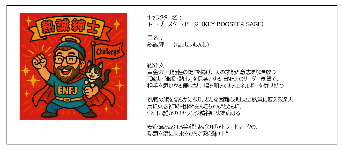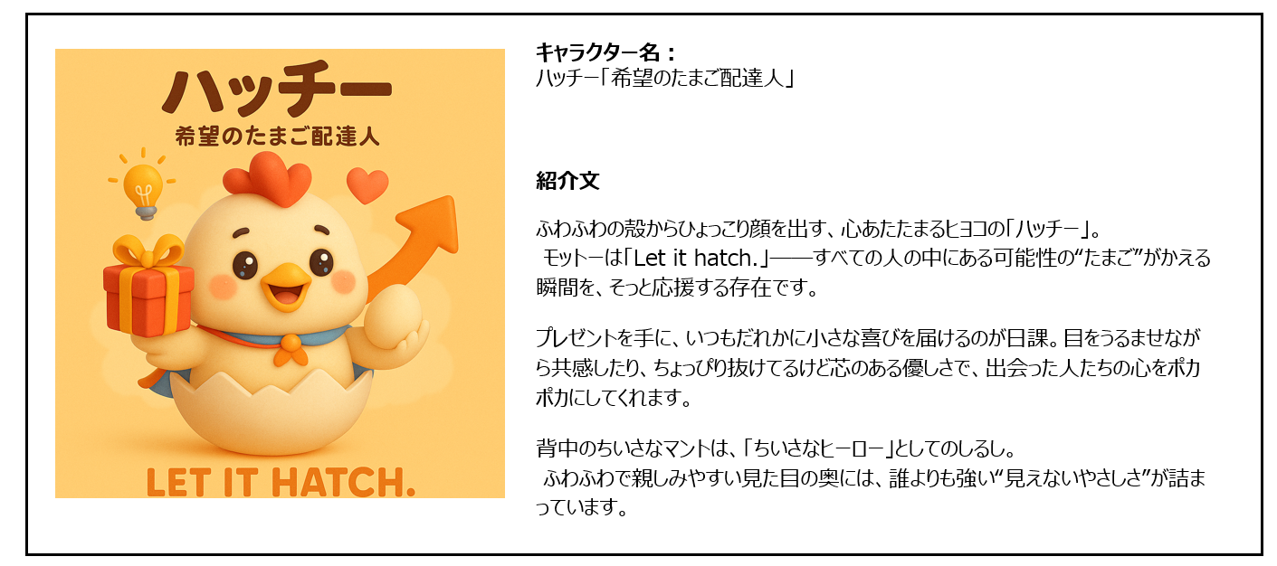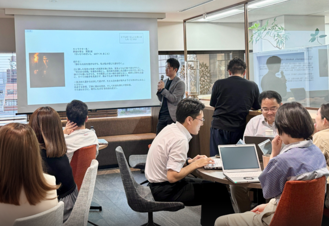 自身の大切にしているモットーや他者から持たれる印象などをチーム内で共有し、その後、自分を表すキーワードを専用のスプリクトにあてはめ、オリジナルのキャラクターをAIで生成するというユニークな取り組みのもとで相互理解を深めました。