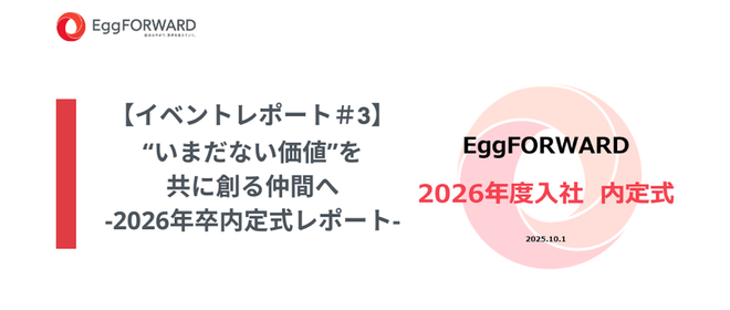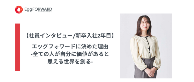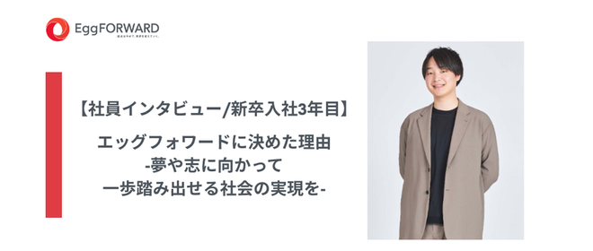 こんにちは!採用広報の鶴見です。エッグフォワードでは「いまだない価値(Egg)を創り出し、人が本来持つ可能性(Egg)を実現し合う世界を創る。」というミッションの実現に向けて、社員ひとり一人が当事者意識を持ち、社会変革の起点を創るべく日々価値創造に取り組んでいます。その一員であることは、新卒社員であっても変わりません。入社1年目から経営や事業に直結するプロジェクトに参画し、自分のWillを原動力に成長していく。今回は1年目〜3年目の社員にインタビューを行い、入社から現在までのストーリーをお届けします。「どんな想いを持った社員がいるのか?」「どんな経験ができるのか?」「成長のスピードは?」...