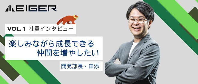 【社員インタビュー #01】「楽しみながら成長できる仲間を増やしたい」開発部長・田添が語るEigerの魅力