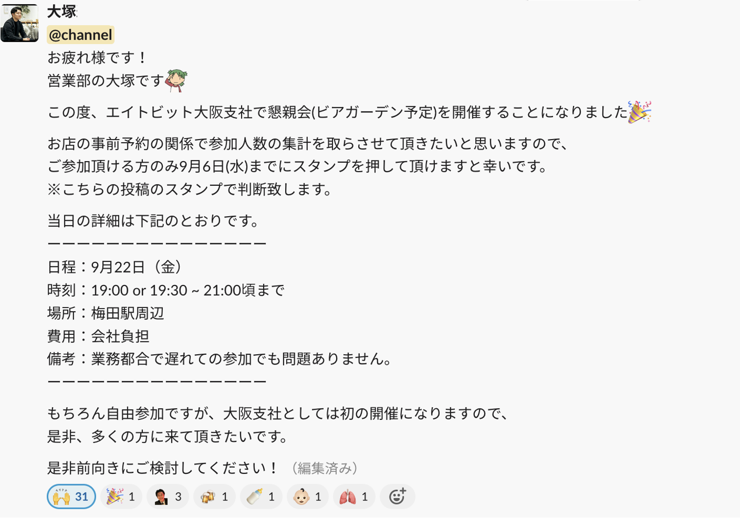 「皆さんの力でエイトビット大阪は支えられている、これからもエイトビットとしての誇りをもってこの会社を一緒に盛り上げていきましょう!!」