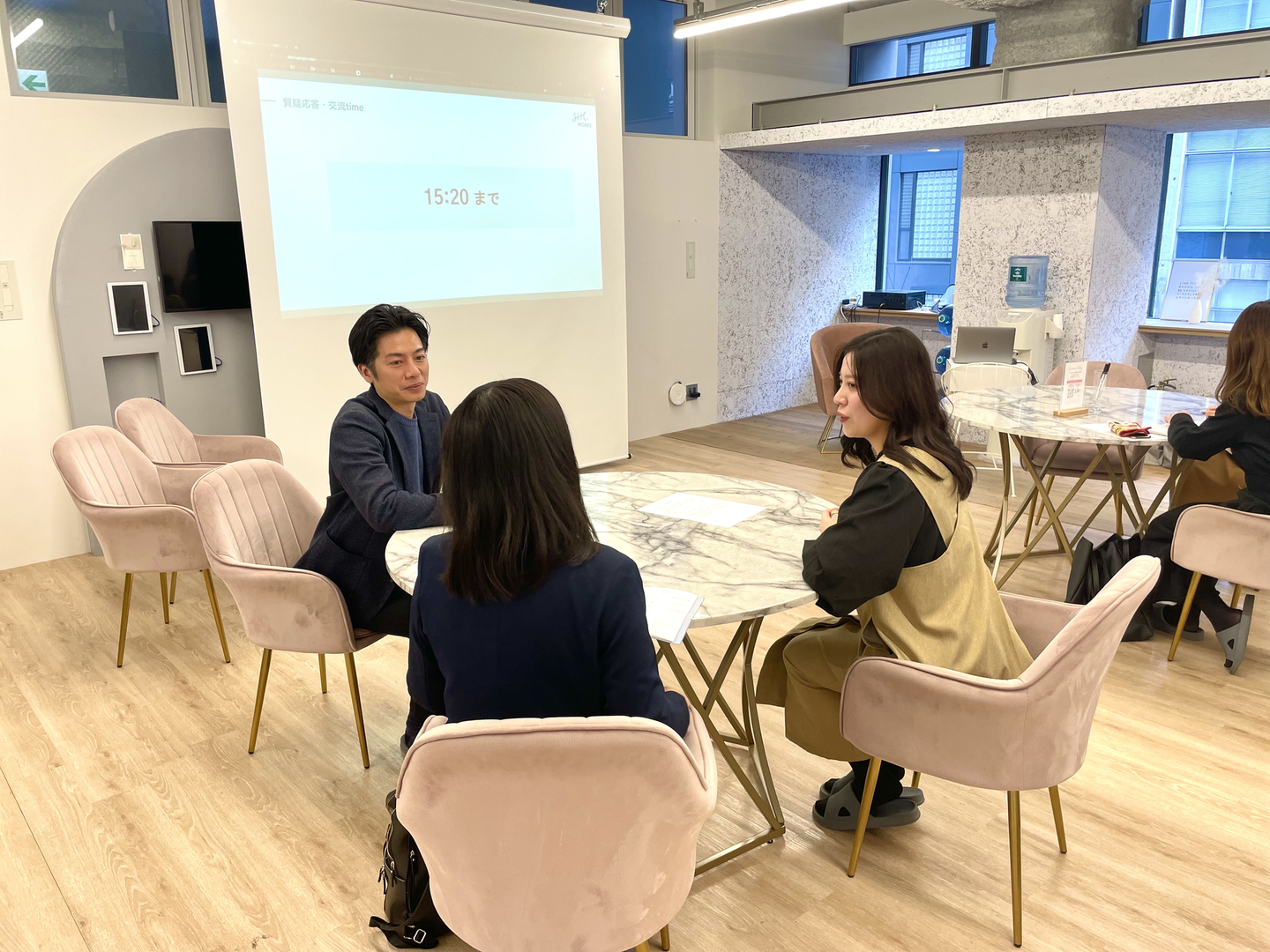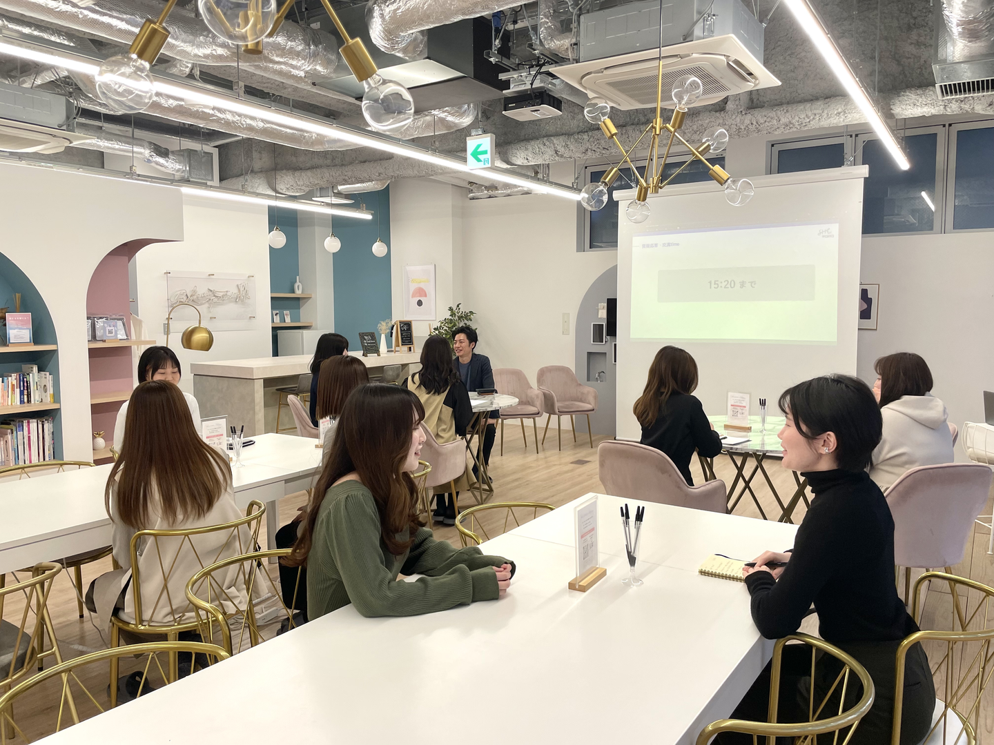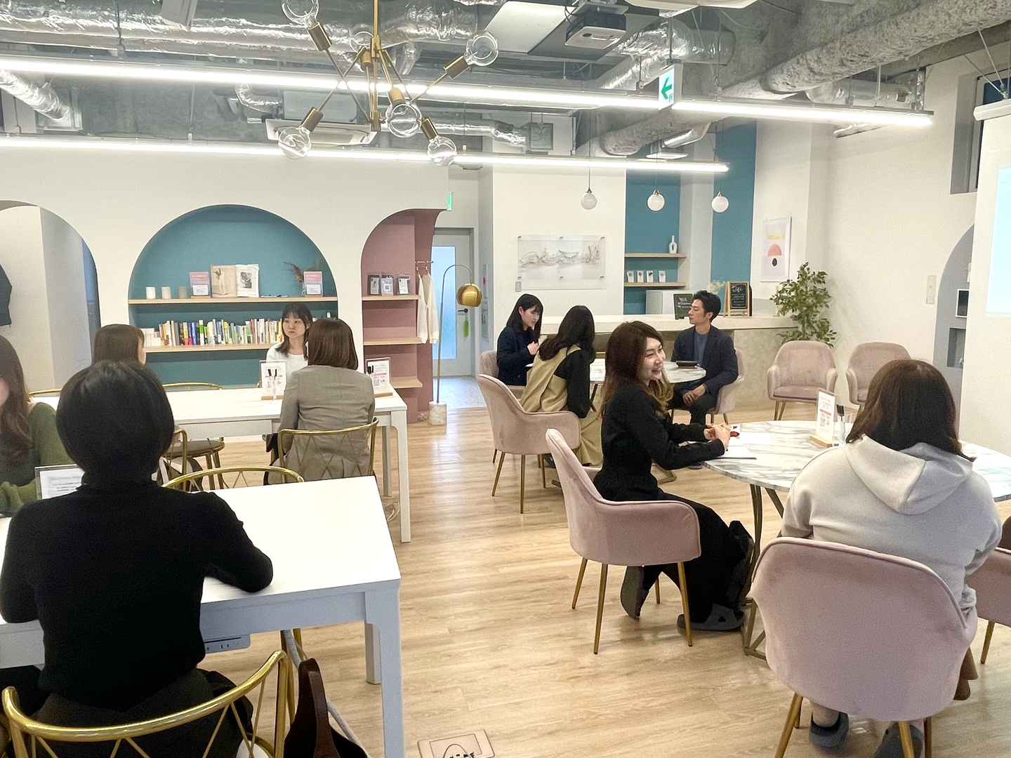 ”女性のための”キャリアスクールということもあり、スクール内は女性好みのインテリアやデザインにこだわった、とても気分の上がる空間でした。