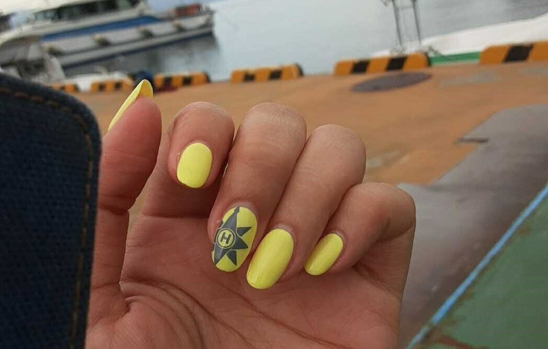 こちらは実証実験のために気合を入れたネイル。(勝手に広島商船高専さんのロゴをお借りしています)